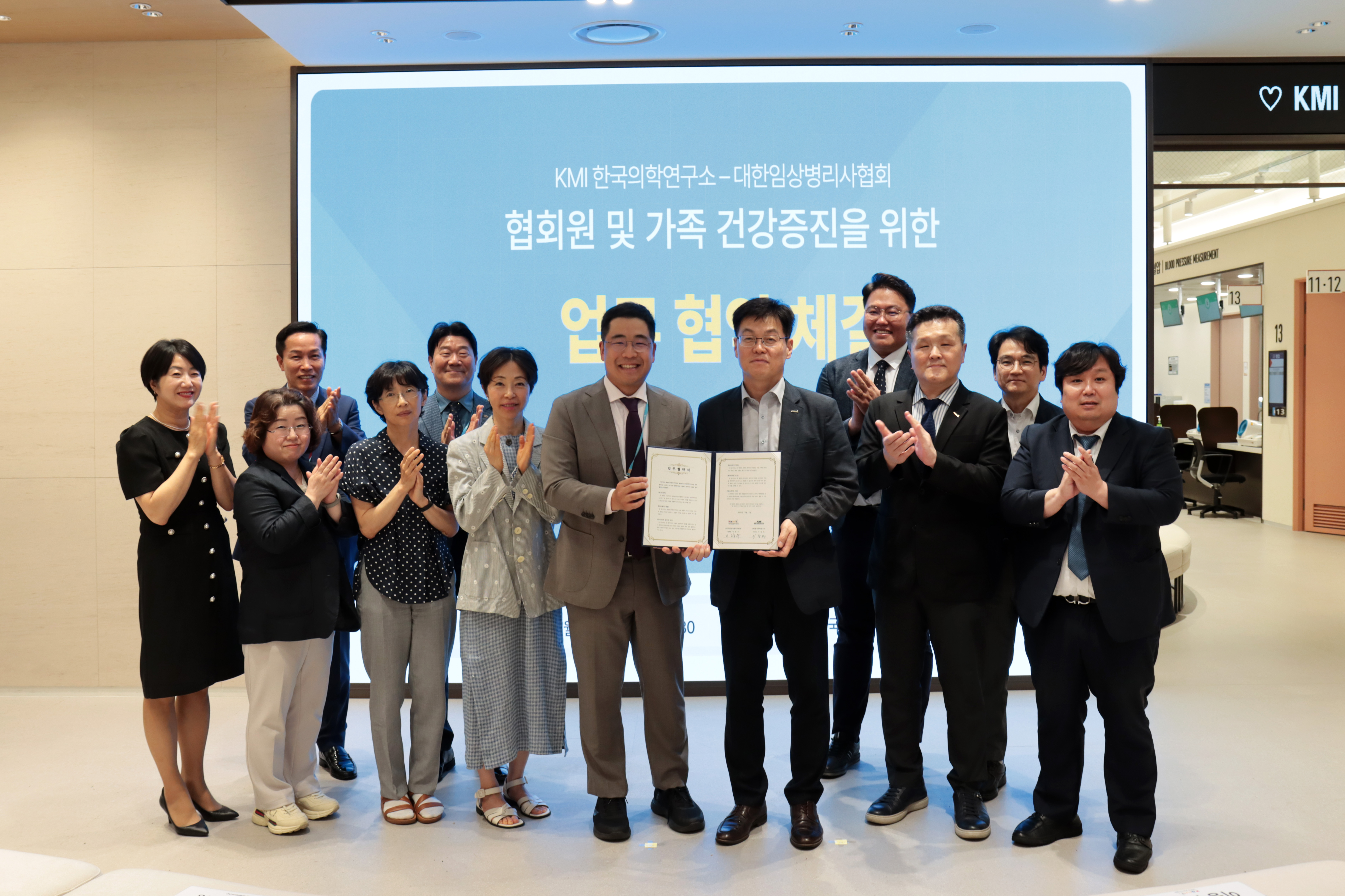 한편, 이번 업무협약식에는 ▲대한임상병리사협회 이광우 협회장, 최병호 사업부회장, 박희열 기획정책이사, 고인철 정무이사, 이민우 고려대학교 보건과학대학 교수 ▲KMI 이광배 이사장, 김대진 사업전략실장, 조찬우 광화문센터장 ▲KMI 중앙분석센터 이유경 본부장, 박연숙 본부장, 조수연 진료부장, 김소영 진료부장이 참석했다.