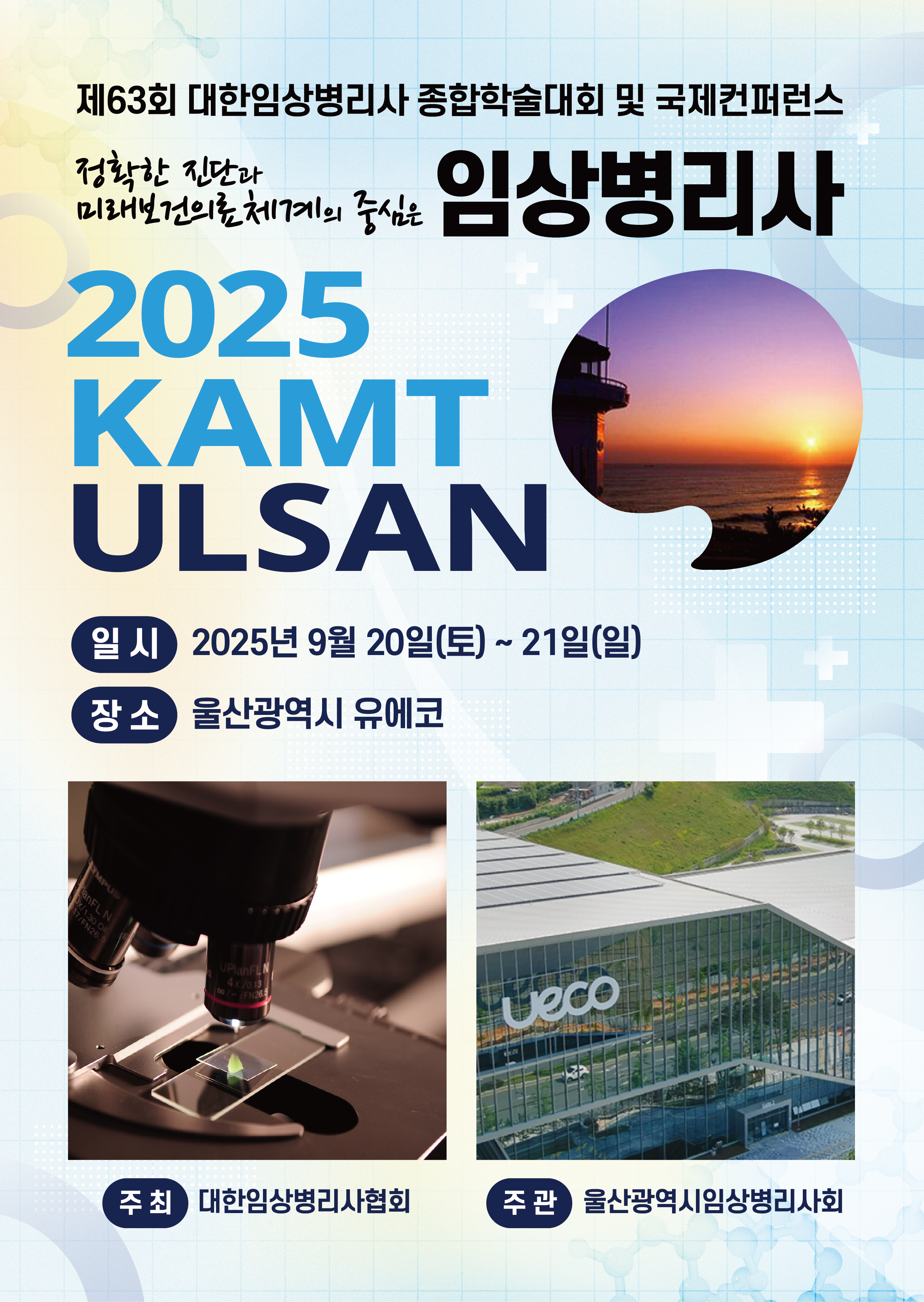 사단법인 대한임상병리사협회(협회장 이광우)가 9월 20일(토)부터 21일(일)까지 울산전시컨벤션센터(UECO)에서 2025년 제63회 대한임상병리사 종합학술대회 및 국제컨퍼런스(대회장 남상열, 이하 2025 KAMT 울산)를 개최한다.